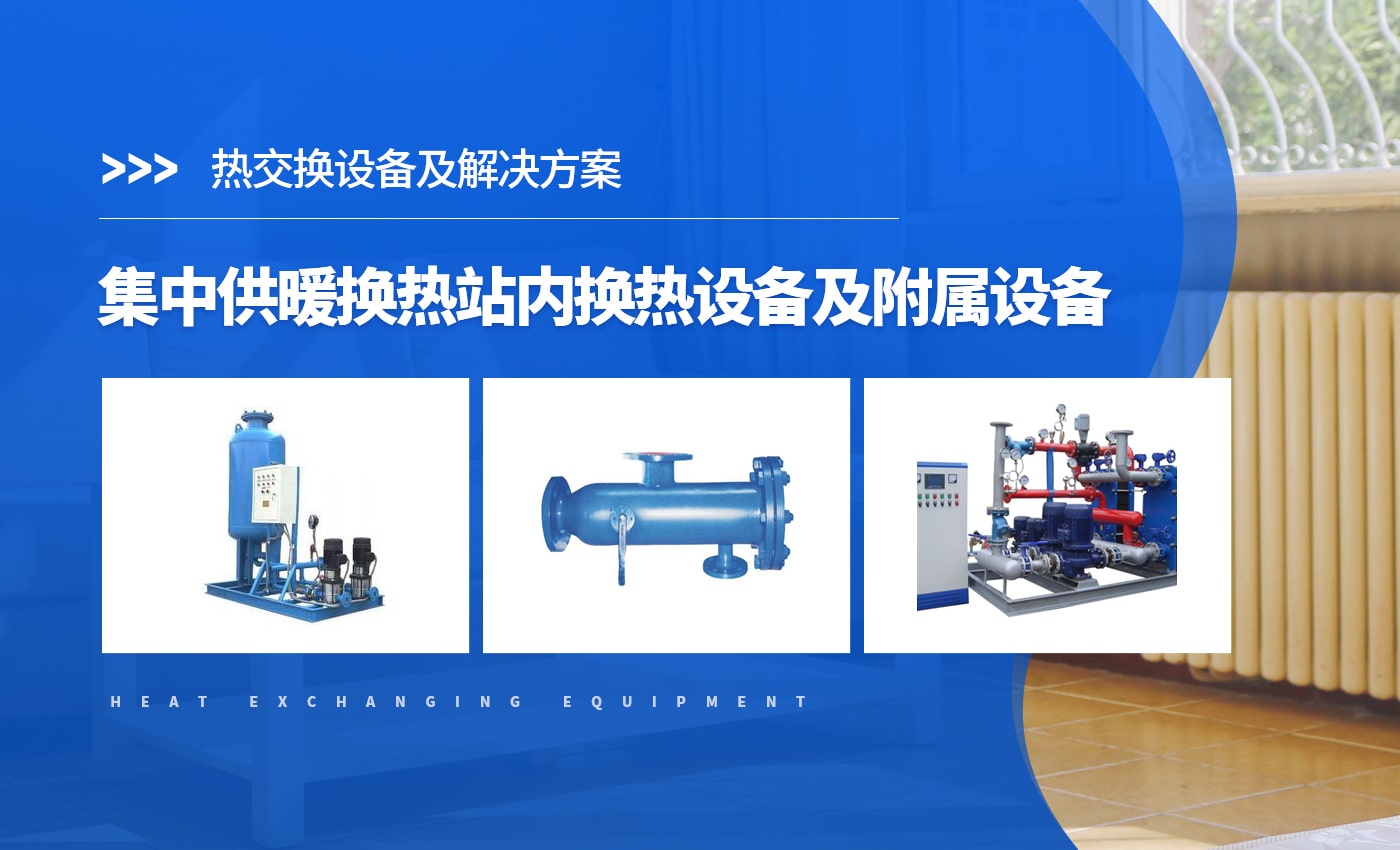 換熱設(shè)備:板式換熱器、管殼式換熱器、換熱機(jī)組、汽水混合加熱器、旋渦式消音加熱器;